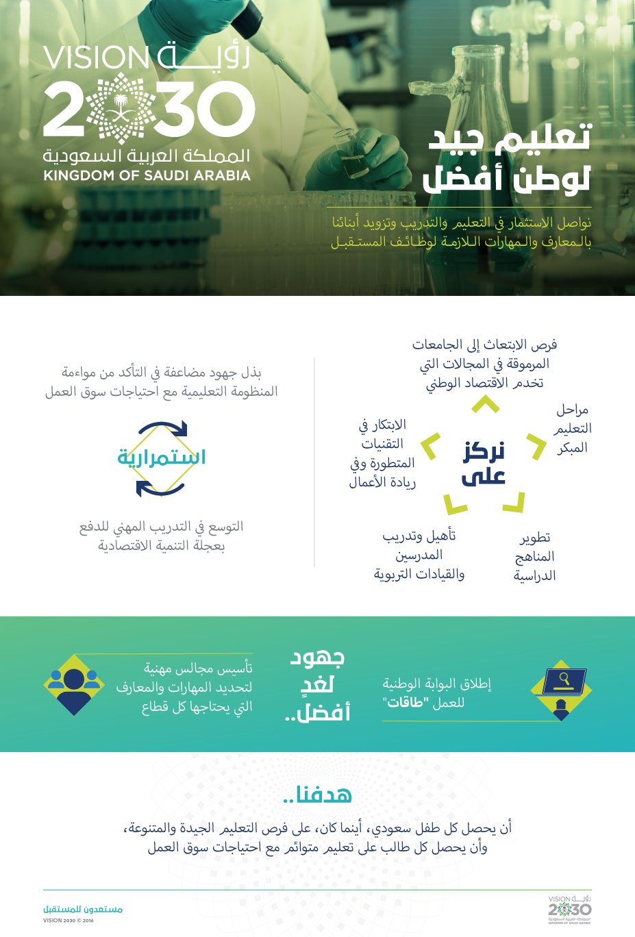 رؤية 2030 هي خطة جريئة قابلة للتحقيق لأمّة طموحة رؤية 2030. توجّهات رؤية السعودية 2030 في التعليم.